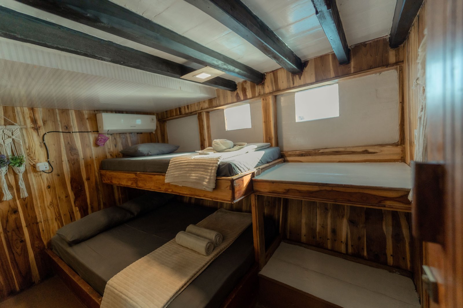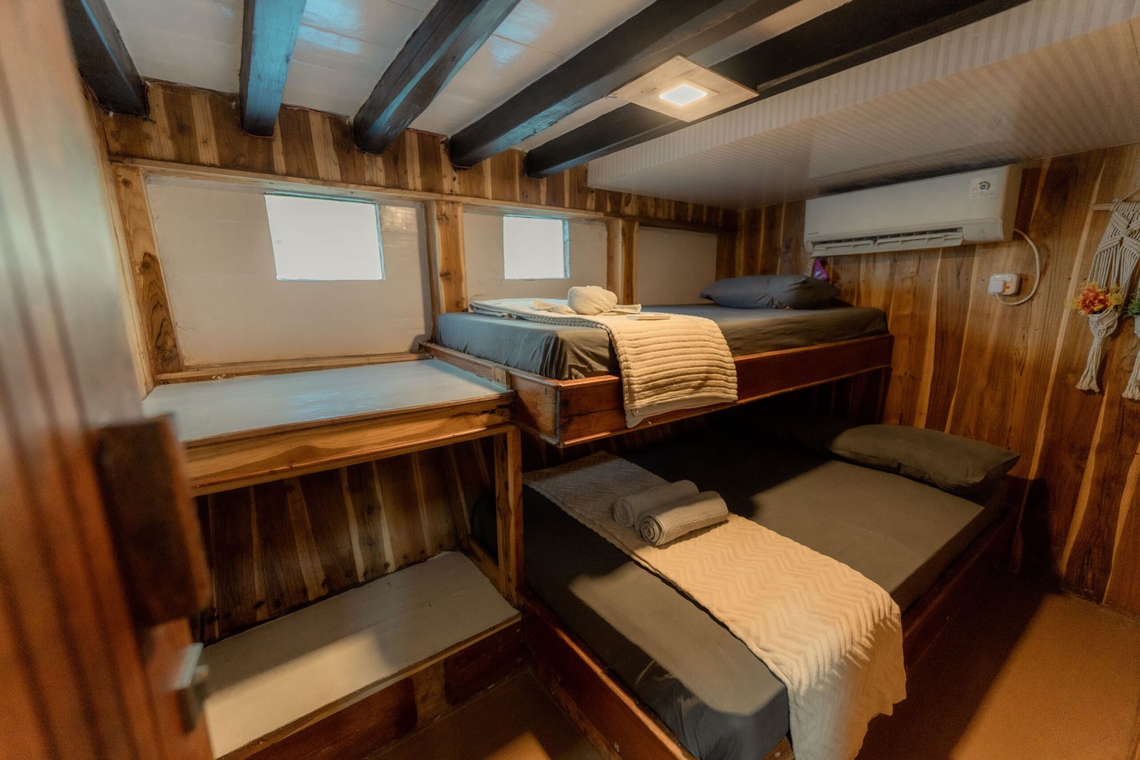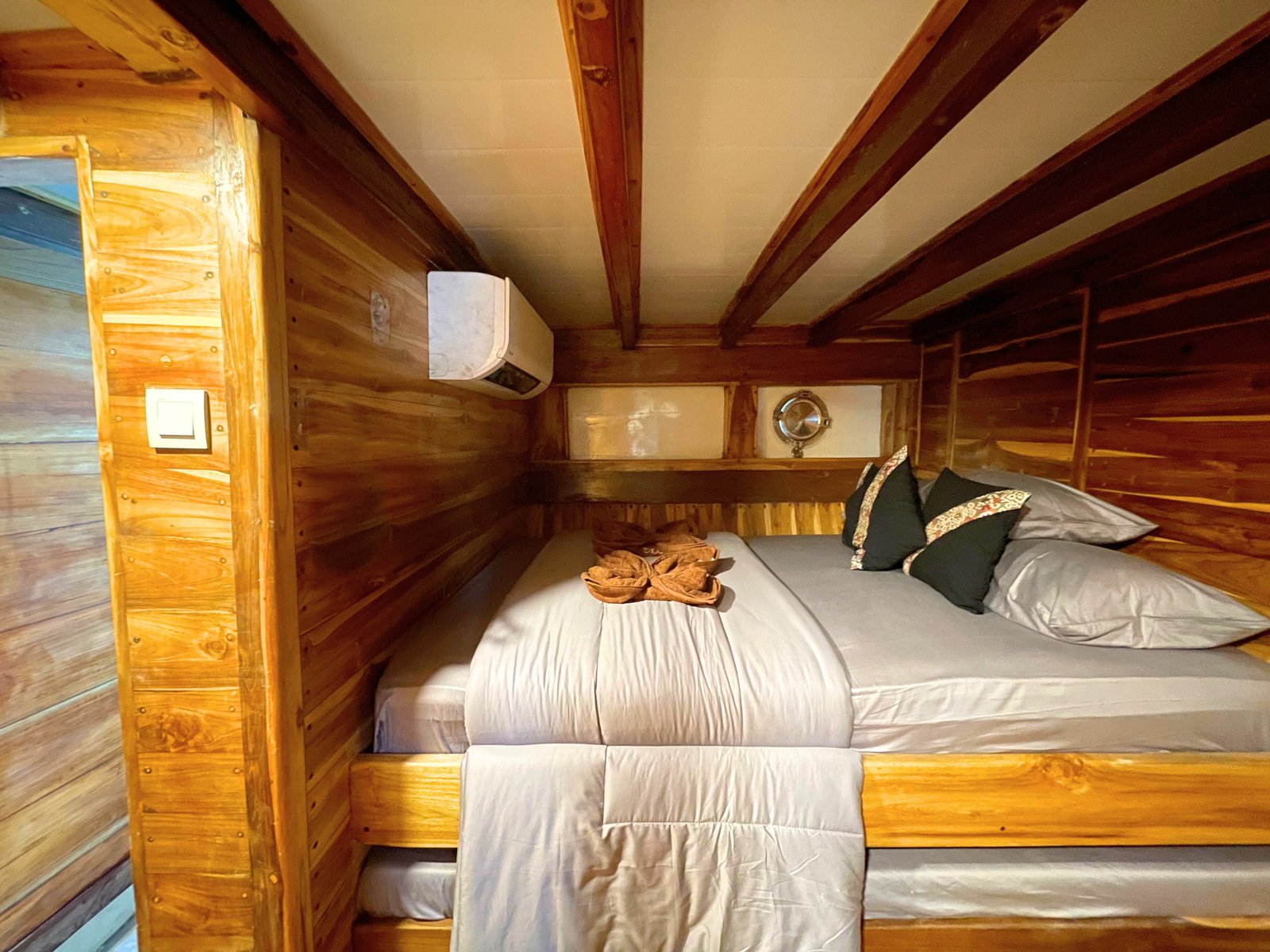 Phinisi Balaraja is a 33-meter traditional wooden boat built for group sailing experiences with comfort and functionality. With spacious cabins, essential facilities, and safety equipment, Balaraja is perfect for exploring the beautiful waters of Indonesia with your crew. All cabins are air-conditioned and share 2 private ensuite bathrooms + 2 additional shared bathrooms.
