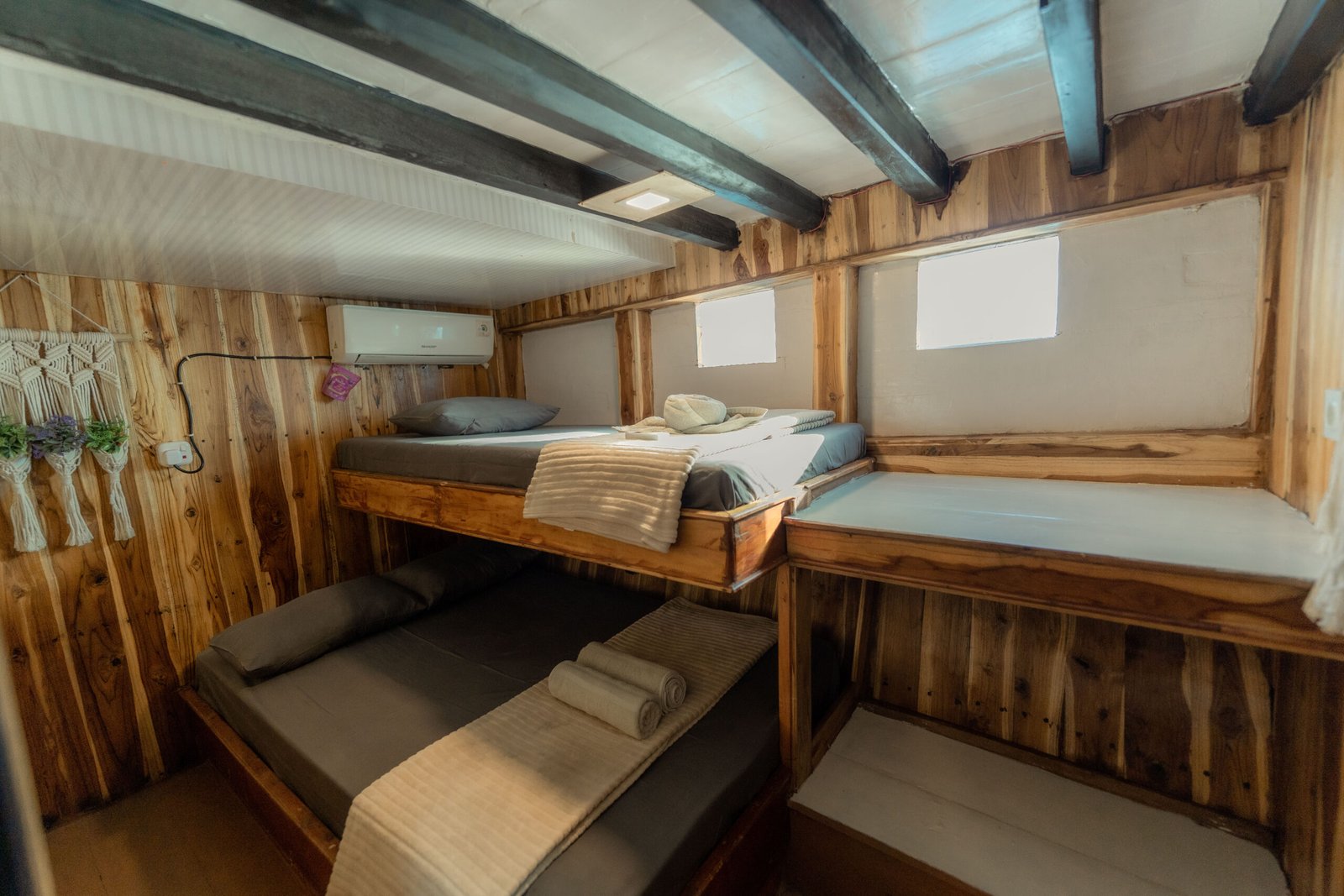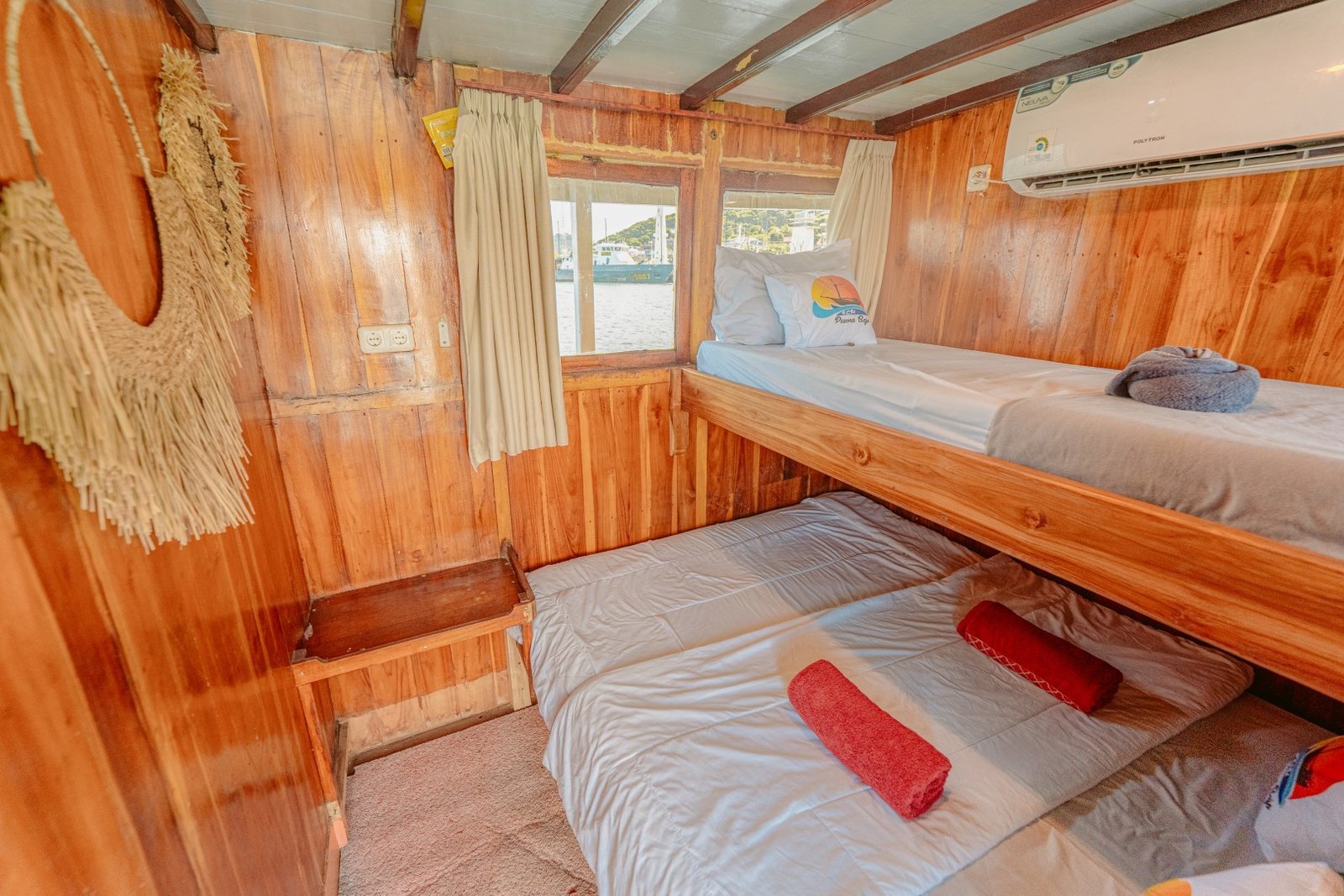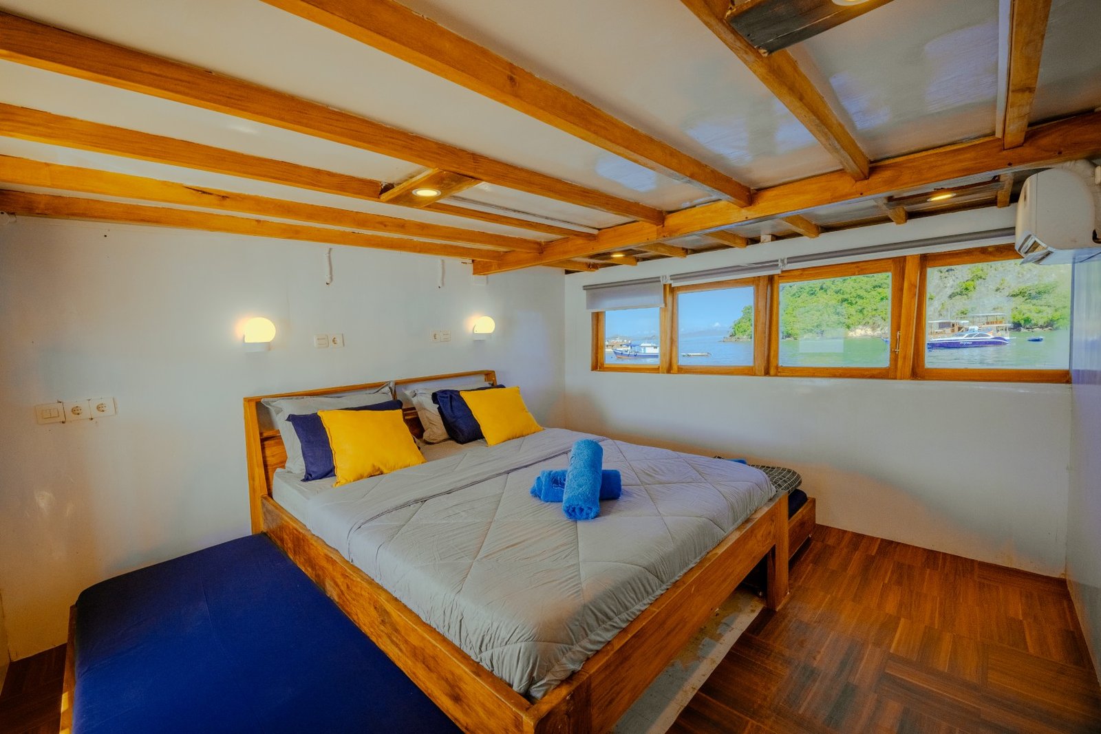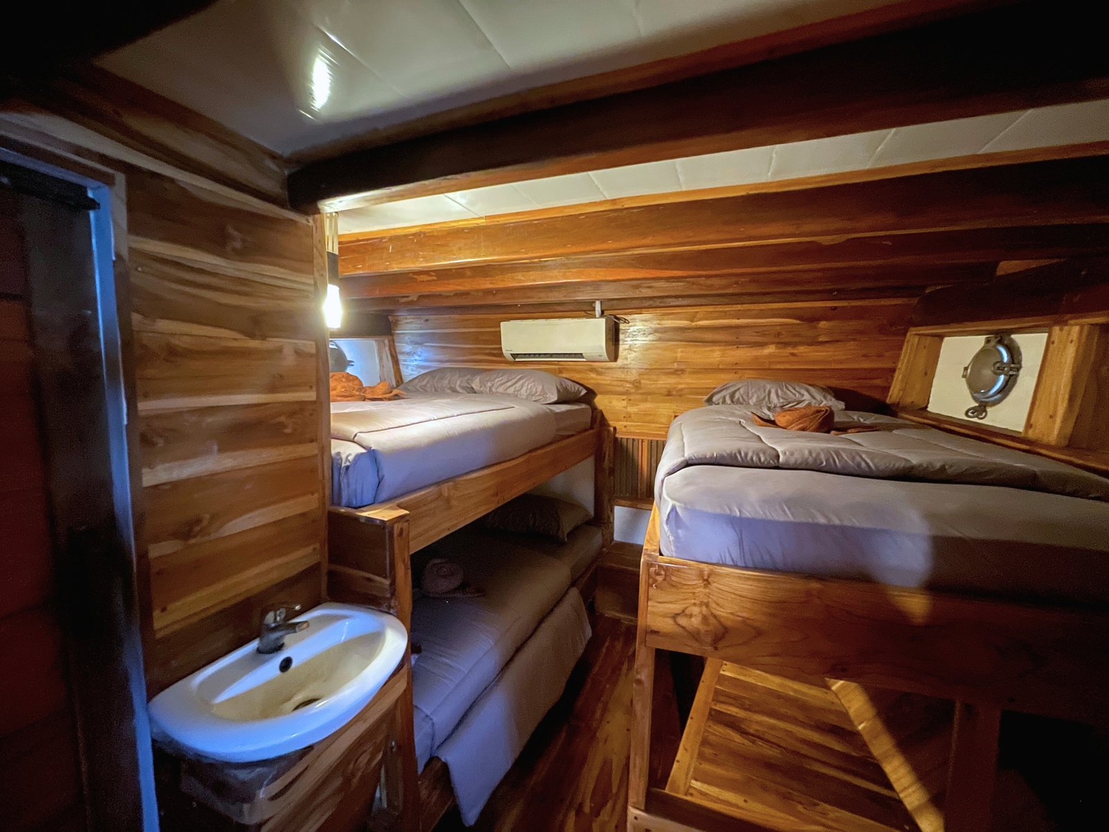 Phinisi Balaraja is a 33-meter traditional wooden boat built for group sailing experiences with comfort and functionality. With spacious cabins, essential facilities, and safety equipment, Balaraja is perfect for exploring the beautiful waters of Indonesia with your crew. All cabins are air-conditioned and share 2 private ensuite bathrooms + 2 additional shared bathrooms.