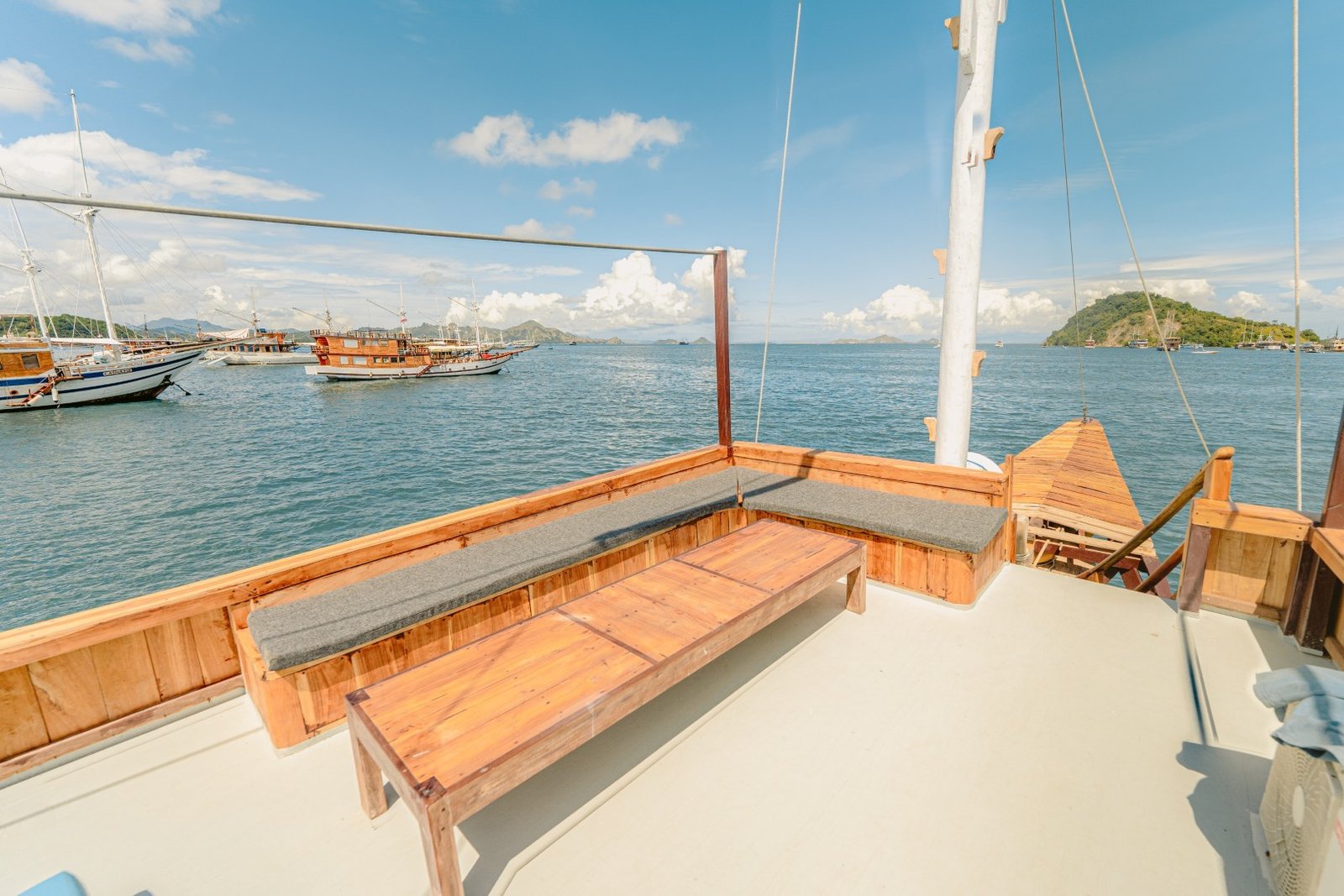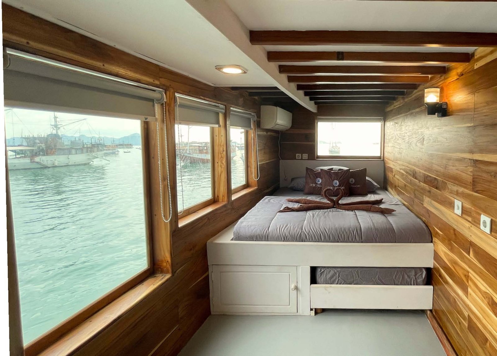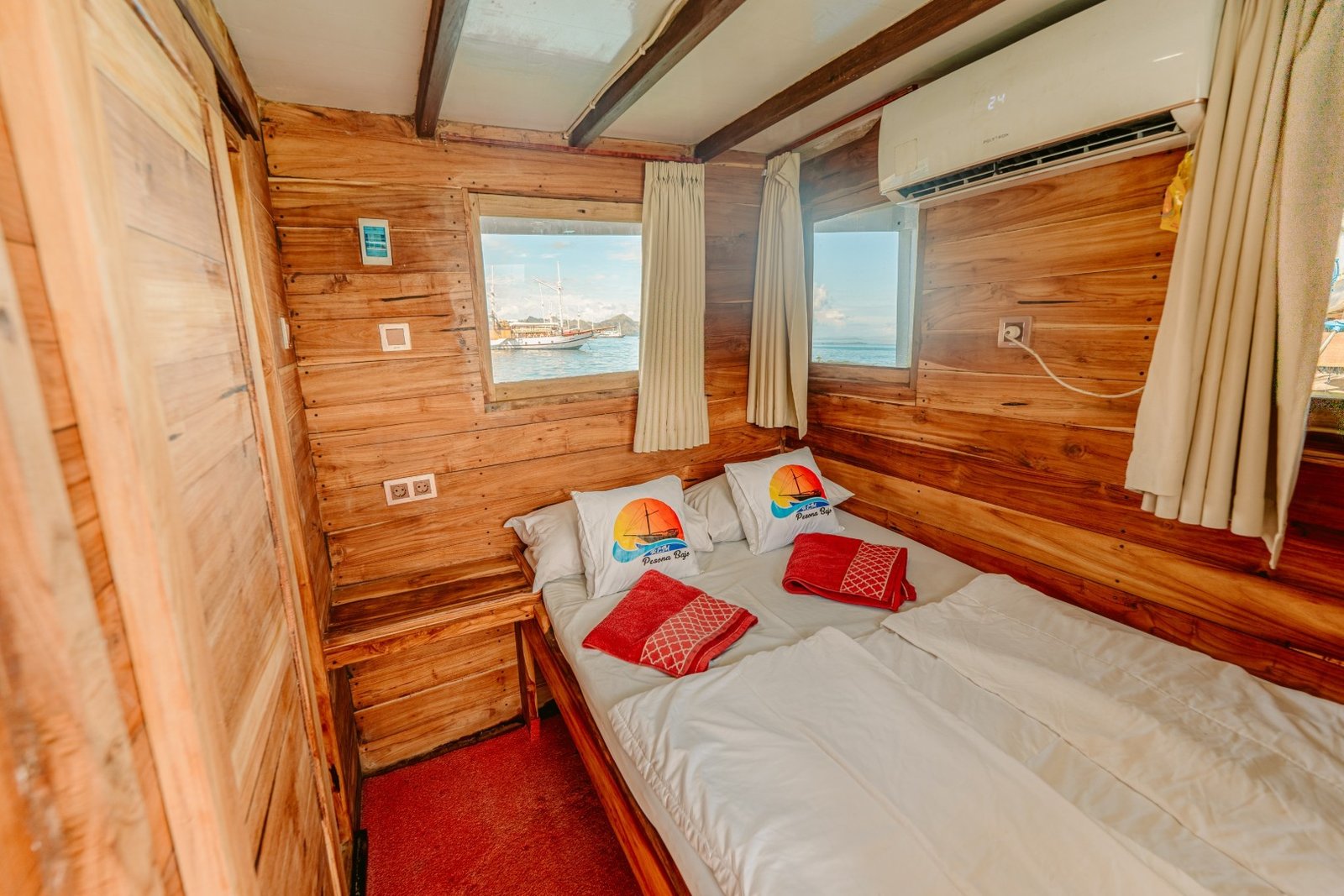 Phinisi Almadira is a 26-meter traditional wooden sailing boat designed for a comfortable and safe sea adventure. With 6 air-conditioned cabins and full onboard facilities, Almadira is perfect for exploring the stunning waters of Labuan Bajo, Komodo National Park, and beyond.