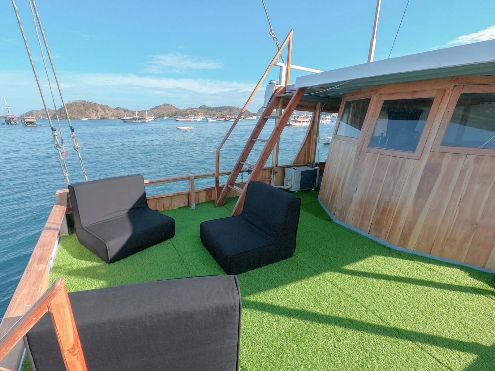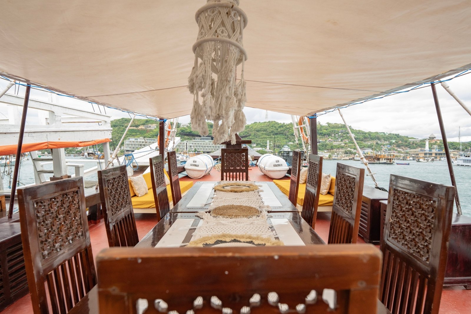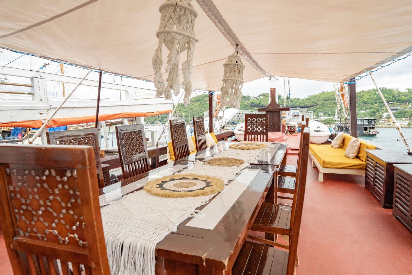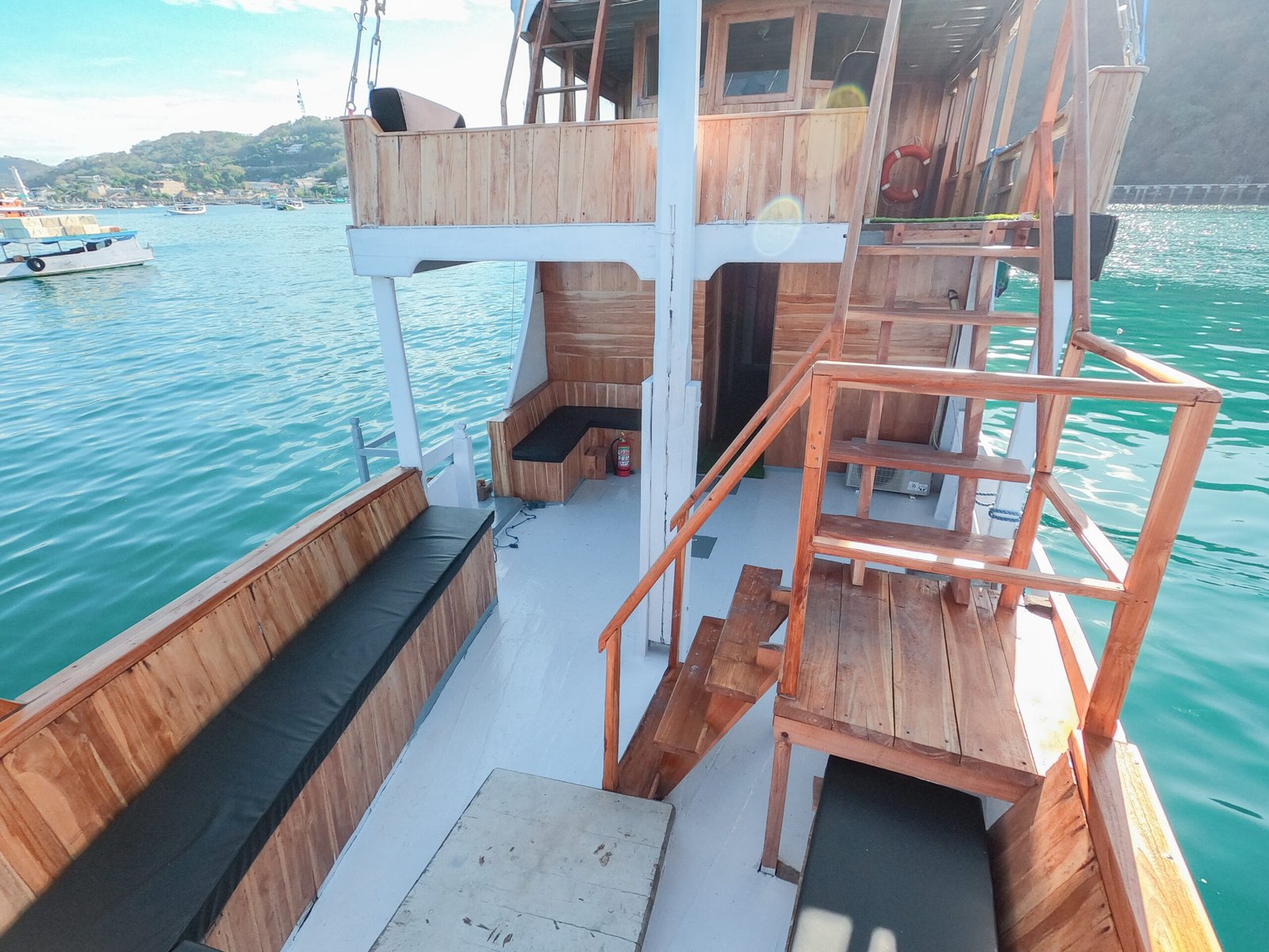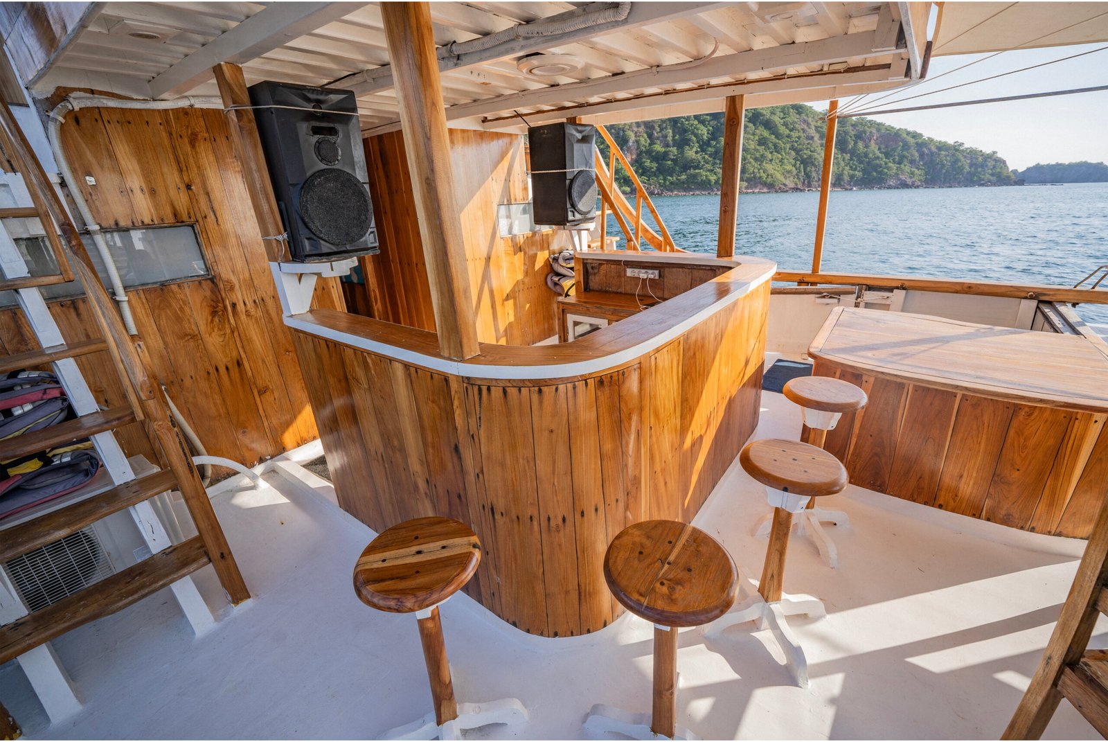 Barakati is a standard-class phinisi boat built in 2023 using strong and elegant ironwood and teak wood. Measuring 28.8 meters in length and 4.9 meters in width, this vessel offers a smooth cruising speed of 6–8 knots per hour. It is powered by a Mitsubishi 6D16 main engine and supported by a secondary Mitsubishi PS 120 engine, with dual Mitsubishi PS 100 generators for onboard electricity.